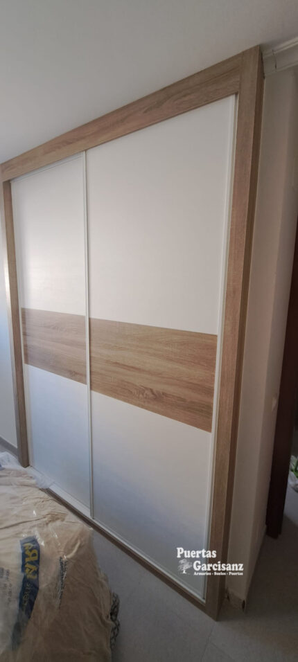 Frente de armario corredera acabado blanco con parte central en acabado roble Joplin en Valladolid