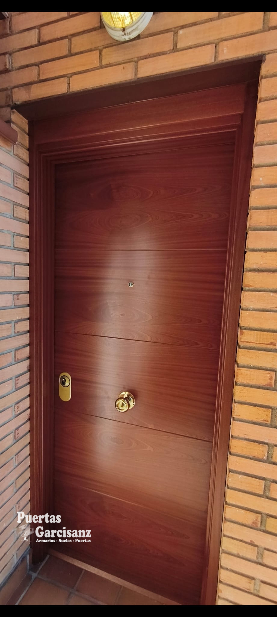 Puerta blindada mod. 5-P en sapelly rameado instalada en Valladolid